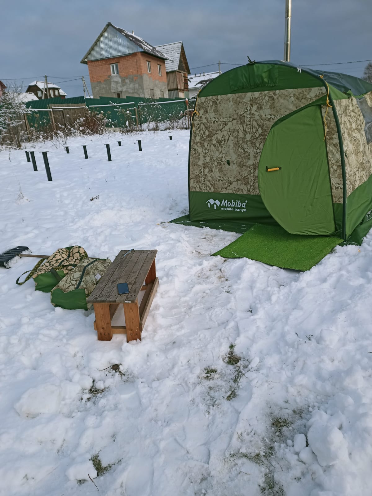 Вводные данные такие. На улице минус 2, ветерок от слабого до сильного. Сначала даже была мысль, что может быть не сегодня, ветер всё испортит. Потом подумал, что так будет даже лучше. Без дождя и осадков конечно по другому, но грязи не хочется, поэтому собрал и затопил....