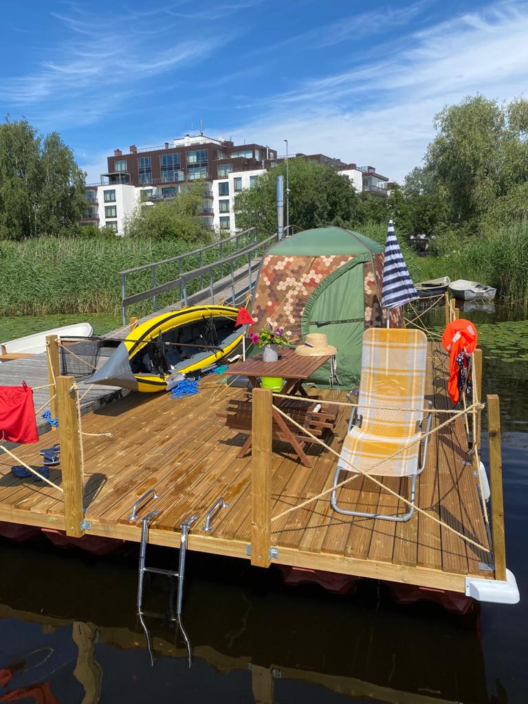 Я из Москвы, на пандемию остался в Юрмале (с марта 2020). Все было закрыто, решили делать свое, Сначала сделали плот, потом выручила Мобиба. Потом на плоту собрали стационарную баню. Извините мобибовцы. Но это не конец истории.