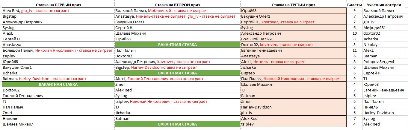 Осталось две вакантные ставки на Второй Приз , - Nikolay и Alex Red.