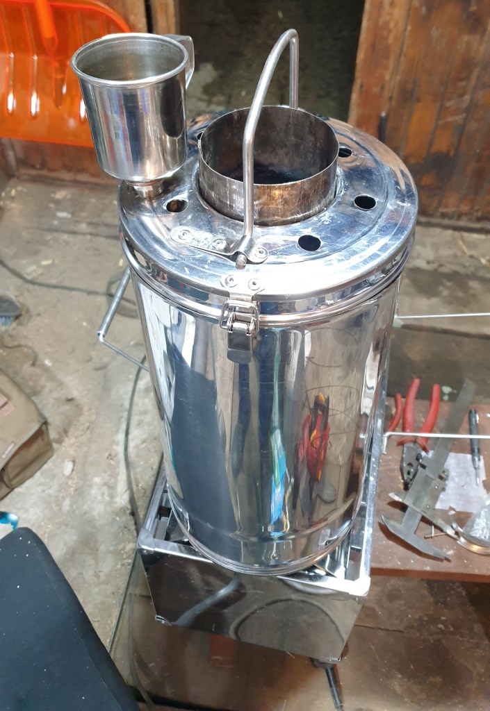 Сергей,у тебя более правильный девайс,у меня эконом вариант. Труба на Печи Дюна в твоём исполнение отдаёт максимум тепла на камни,более быстрый нагрев,экономия топлива. Кто будет использовать девайс от Жиги,окуратней лейте воду,что бы внутрь печи по трубе не попало на дрова,из за этого баня у нас закончилась через полтора часа. Ещё хотел использовать шляпу от ППГ-90,но там мельче камень нужен. В варианте который использовал в бане,вес 10 кг жадеита,и то не весь вошёл. Первое фото.