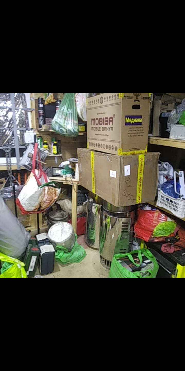 ну а че, заодно и быт полустационарной Мобибы запечатлеть - вот он, пол из поддонов (или это у Бэтмена? я подзабыл чёт, но вроде, и у тебя из поддонов был, не?), вот она новая печечка тихонько нагревается, треск поленьев, шуршание Мобибы при открывании и закрывании дверного клапана, полки с тазиками и самодельными подголовниками, закипания парофона, голос дочери снаружи: "Бать, тебе нормально?!".... :lol: