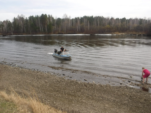 Днём очень тепло, доходило до 25 градусов. Программа как всегда насыщенная - баня, рыбалка, шашлык на Шикардосе. Подплывали на катере друзья, стоящие в 10 км выше по течению.