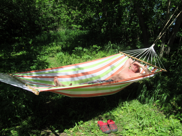 Испытания прошли удачно, что задумывал, то и получил: вдвоём лежать возможно. В МБ-15 уже привыкли получать банные процедуры лёжа и в Кайфандре-5 тоже хотелось, а в тёплое время отдыхать между заходами можно и на улице. На удивление ещё до сих пор нет комаров (один, два не в счёт), а уже должна быть мошка, чудеса.