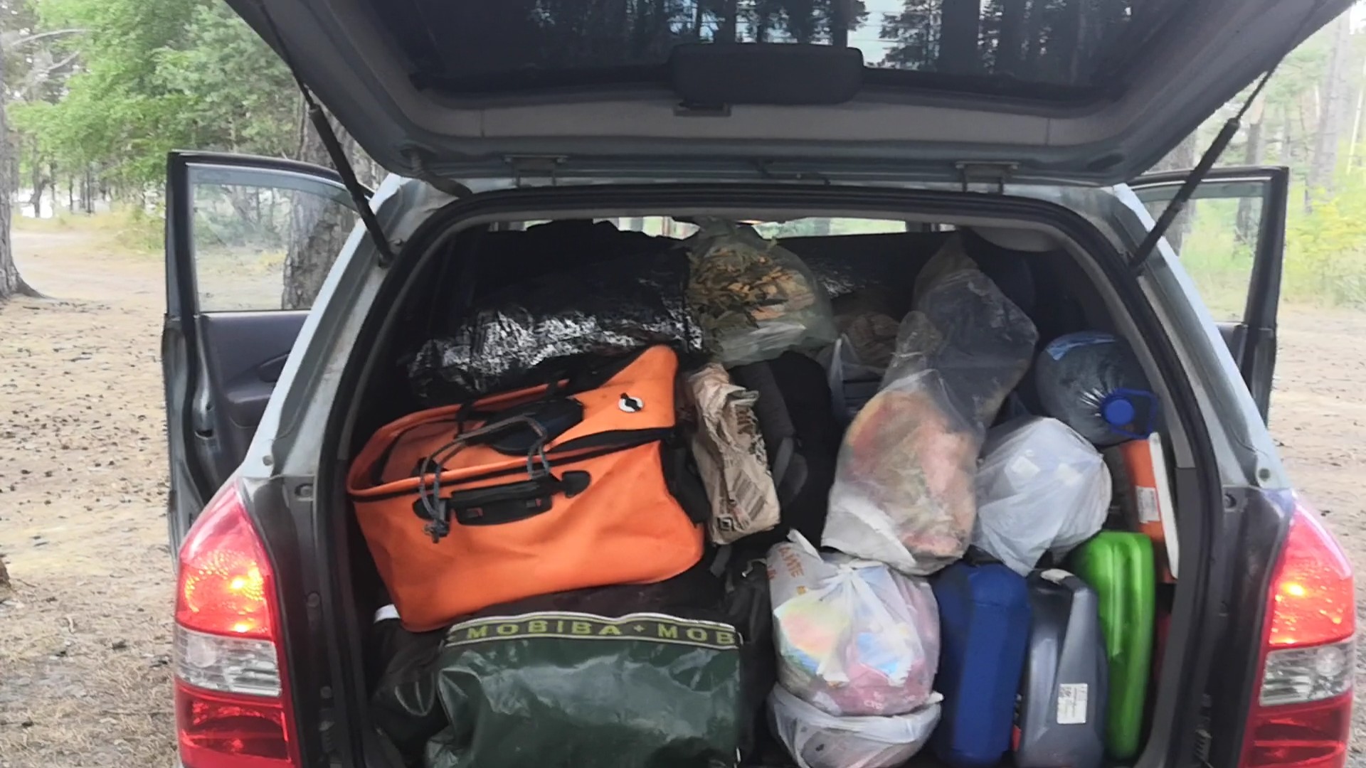 В ней же и ночевали. На видео это всё увидите. Выносил полки, стелил на пол тент, сверху на тент стелил ПУ от РБ-200. Заносил 2 надувных матраса и печь Дюна-3. Вот так неспешно, за 10-15 минут баня превращалась в дачу.