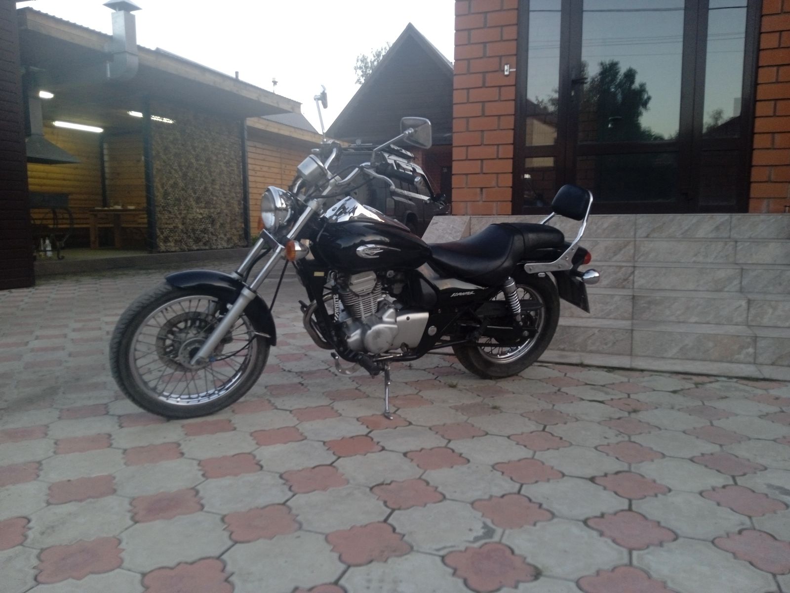 Малыш чоппер-круизёр Кавасаки 125 кубиков. Взял по цене новой Альфы. Для своего объёма едет очень неплохо. Но самое главное - очень удобно сидеть - седло широченное, ноги вытянуты вперёд. Сразу вспомнил Илью на Альфе и свою прошлогоднюю поездку в Красноярск за эндуриком Сузуки, на котором больше 100 км за раз было уже тяжеловато. Здесь за 400 км останавливался только раз заправиться.