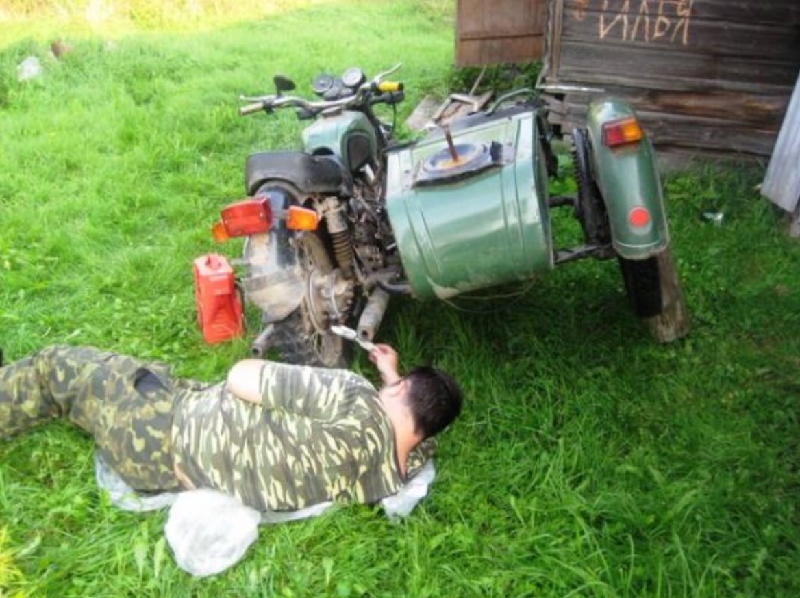 И только году в 2006 купил себе в деревню старый Днепр 11 с коляской. Закорчен он был жутко под чоппер, бак от какого-то старого ИЖа капля, сиденье деревянное типа прощай жопа, самодельное обтянутое кожей. На сколько смог вернул его в око-лосток и месил деревенскую грязь, а летом без коляски гонял по окрестностям. Харизматичный был мот. Суровый, мощный, прожорливый и склонный к перегреву.