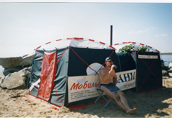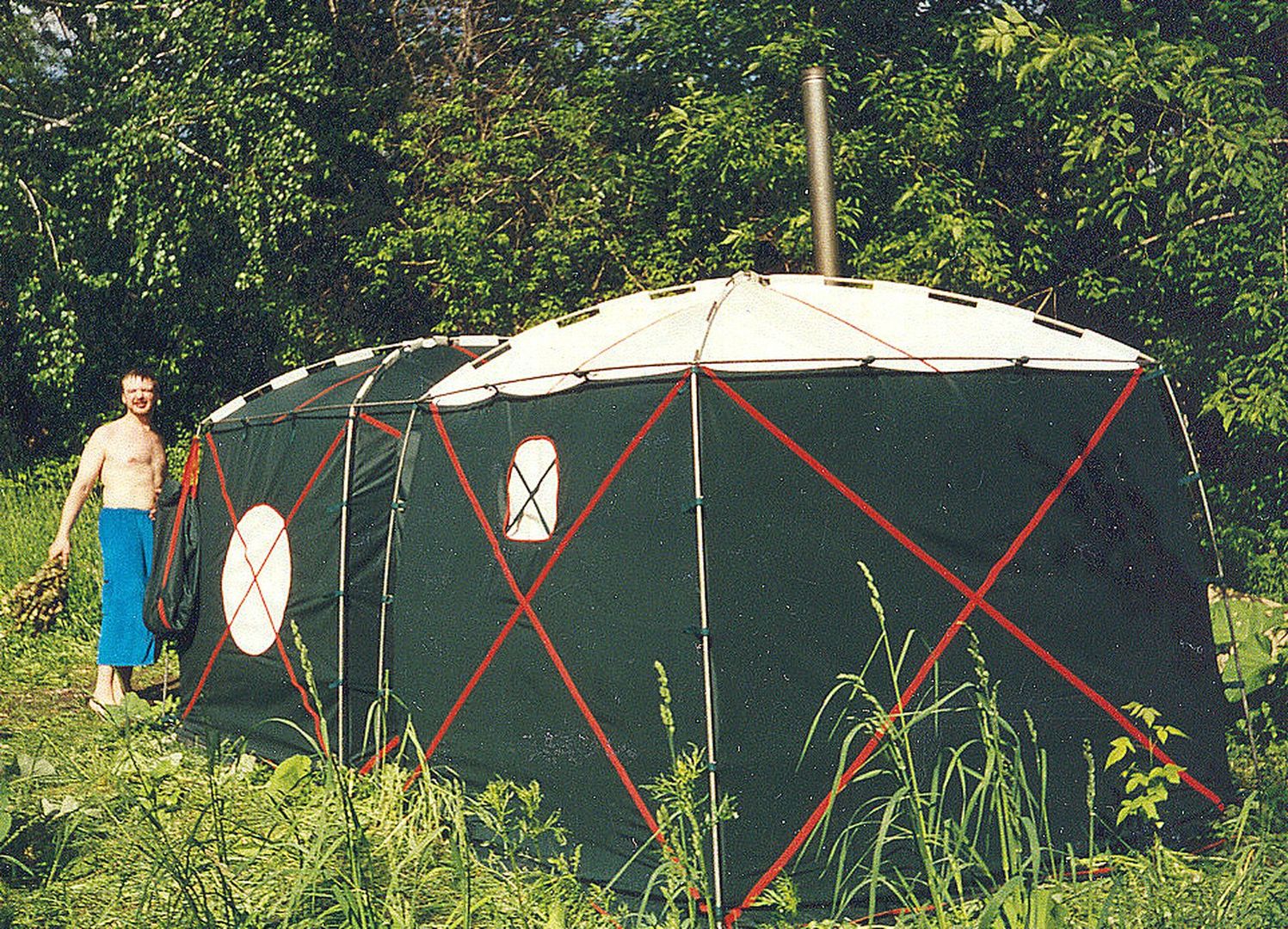 Но еще в 2002-м году я стал думать и о комнате отдыха. И тогда мне мобильно-банный комплекс виделся как две отдельные палатки, состыкованные через переходной узел.