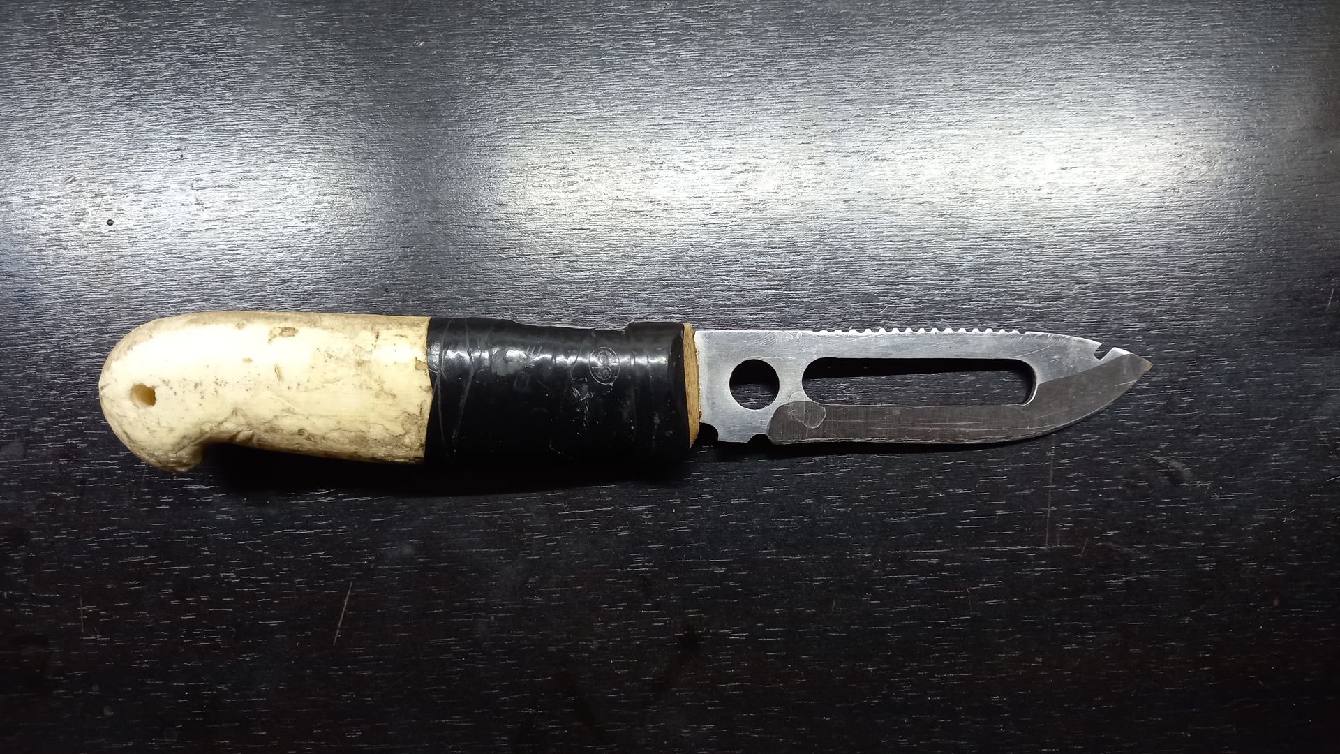 У меня есть облегчённый рыболовный нож-поплавок. Он у меня 15 лет,не меньше,по тому что поплавок. Из Ворсмы. Несколько лет назад в Карелии сломал ручку. Пытался уже дома отдать,что бы отремонтировали,и в Ворсме в магазинах спрашивал,у кого похожие продают,закатывают глаза,о чём то думают и предлагают купить другой. Но сейчас болшинство поплавков или лезвие целиковое,или ручка обычная деревяшка. Вот так с изолентой и пользую,клеи не помогают,или не надолго.