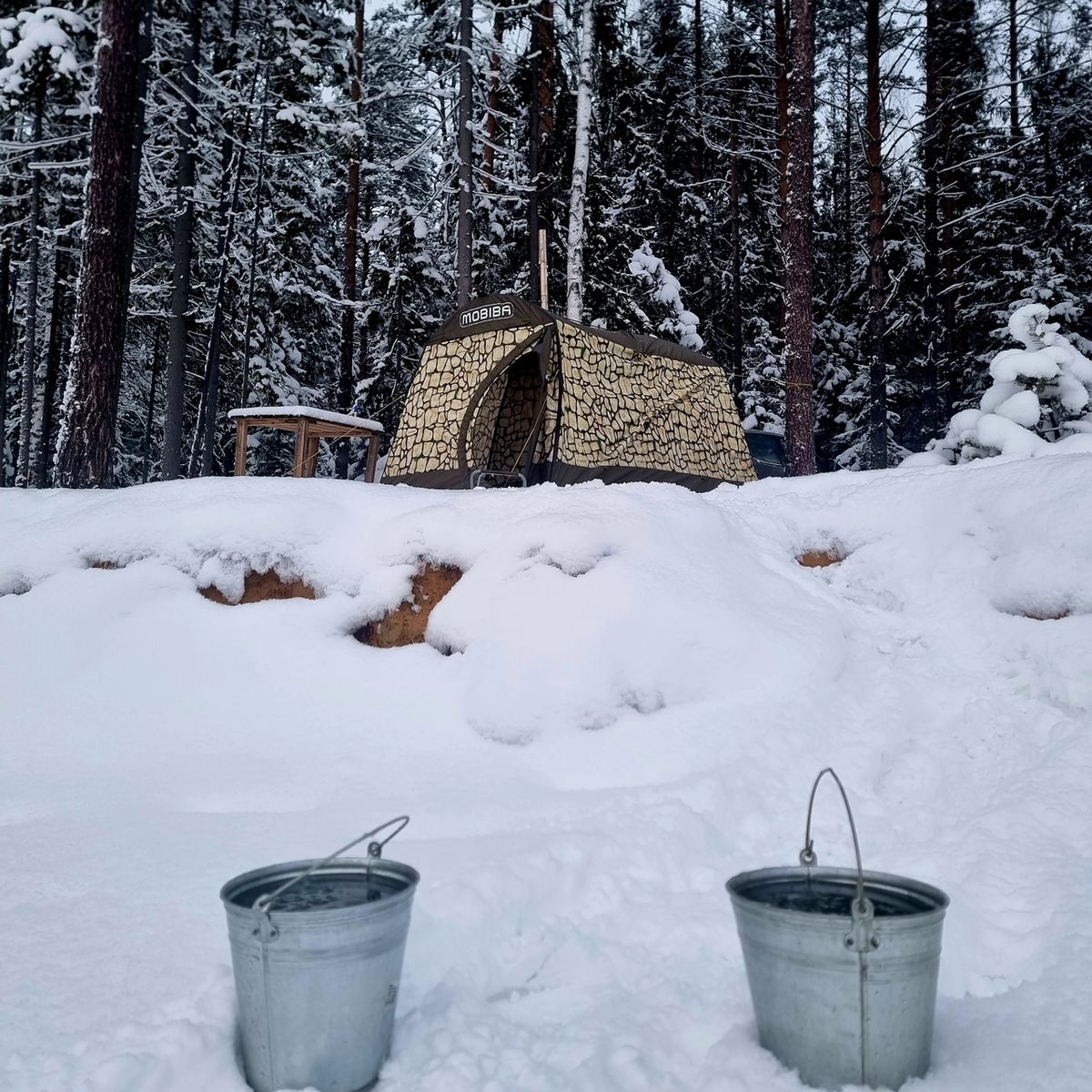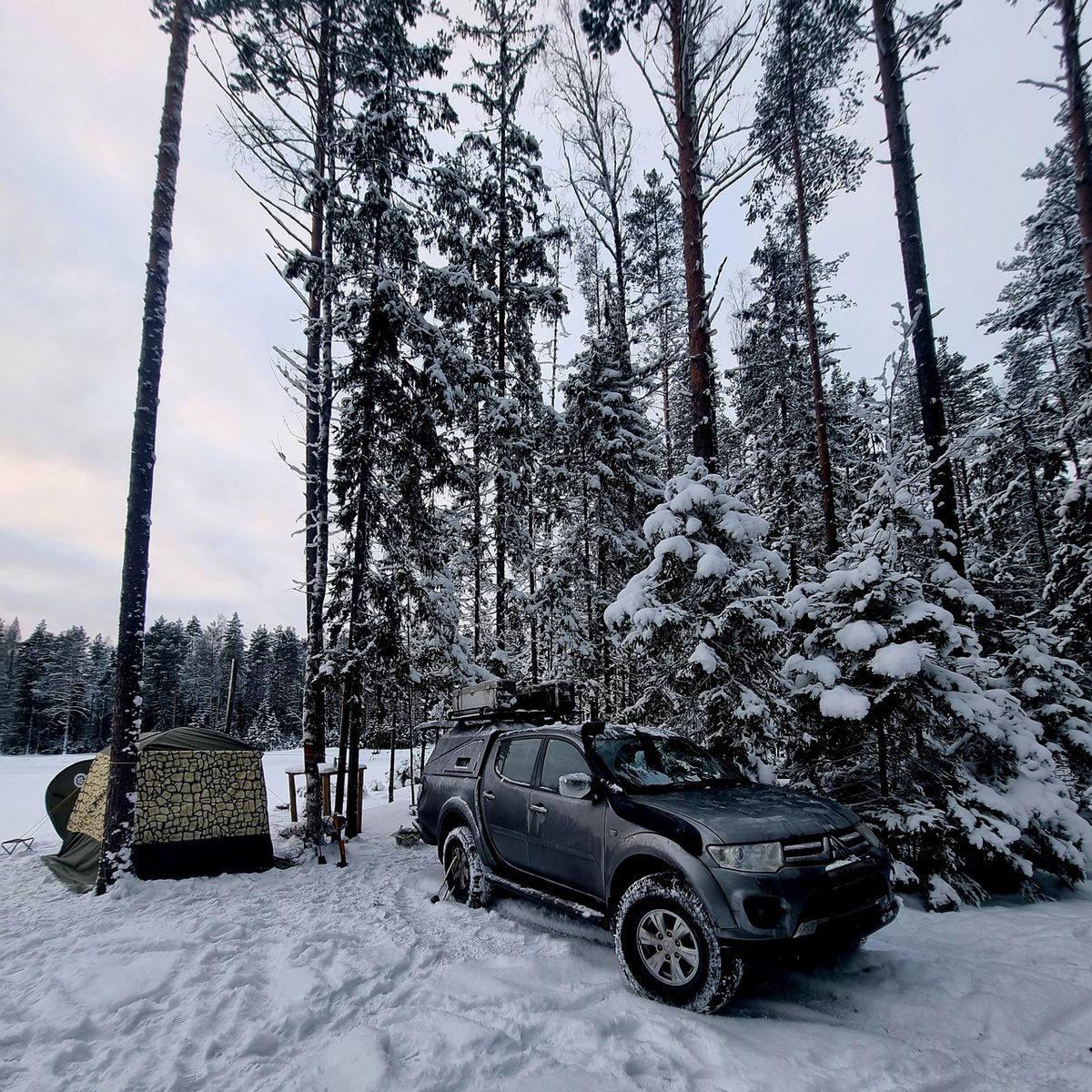 Зимой у вас выезды достаточно короткие, кучу кемпингового барахла тащить с собой нет необходимости. Возьмите с собой пару кусков изолона по 2,5 метра. Вот прямо настаиваю