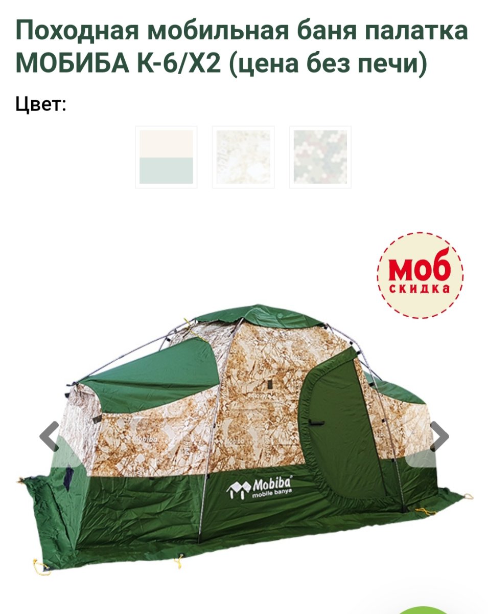 Палатка Мобиба К-6. Есть два цвета: "Фирменный камуфляж" и "Кмф".