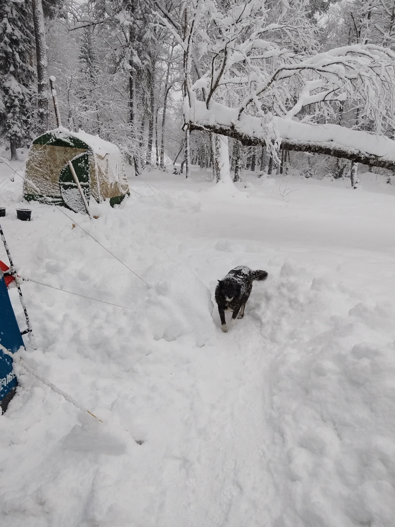 Ну и как по прогнозу пошел снег. Валил так что белого света не видать – много но мокрый и тяжелый. Пухляка не дождались. Каждое утро ездил укатывал дорогу до большой дороги чтоб не встрять с таким количеством снега. Удалось вволю после баньки повалятся в снегу. Мне так баня со снегом гораздо лучше чем с холодной водой. И стресса меньше и кайфа больше.