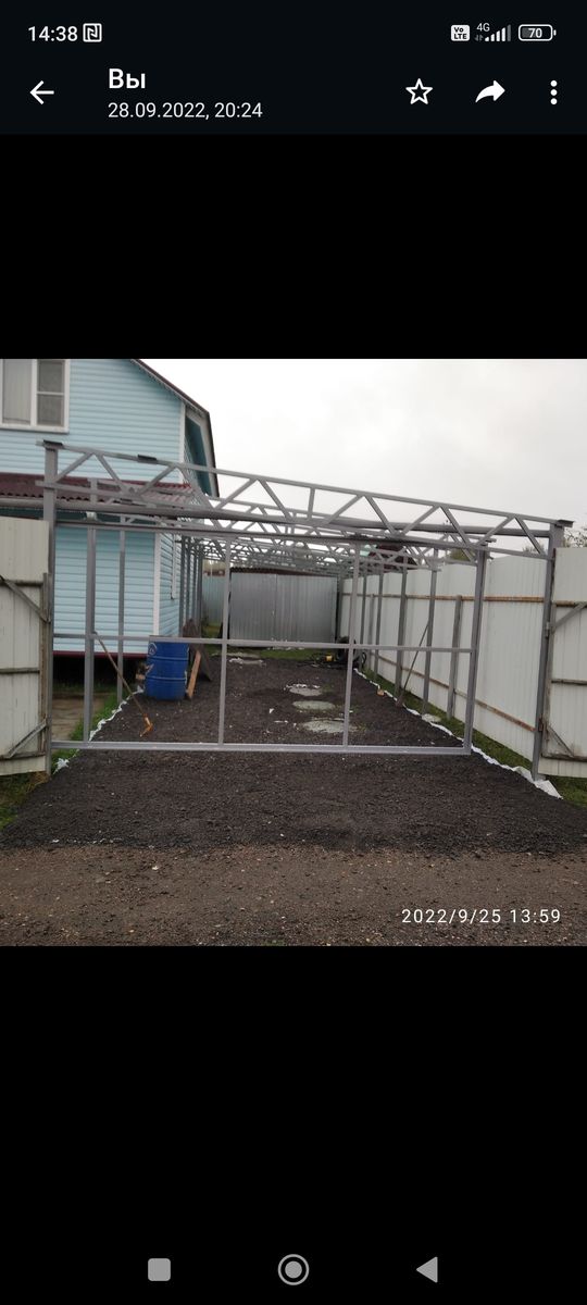Сначала я ферму просчитал по формуле в инете. Выдавало, что можно местами поставить меньший профиль. Решил не экономить, а гнать всю ферму одним размером металла 2 мм. По русски, перестраховался немного. Потом папа, со своим прочнистом, просчитали у себя в КБ. Всё таки люди самолёты строят. На максимальную снеговую нагрузку. Нарисовали мне чертежи. Варить я пригласил родственника, который всю жизнь работает сварщиком. Проволкой с аргоном варит уже лет 20 наверно, как полуавтоматы промышленные появились у нас. На больших сварочных автоматах, с автоматическим переворачиванием заготовок. То есть всё по серьёзному. Для приваривания в стык надо очень ровно и в размер отрезать металл. Резал я и так бы не смог нарезать заготовки. Да и времени потребовалось больше бы. У сварщика было в запасе только 2 выходных, т е 4 дня на работу. Родственник сказал что в нахлёст приварит по крепости так же как и в стык. Так что кувалдой не снесе́шь. Как он ответственно варил, я видел. Если бы варил я, то надо было бы присматривать при снеговой нагрузке, я не специалист. Так что всё было просчитано и продуманно. Как всегда, даже с запасом.