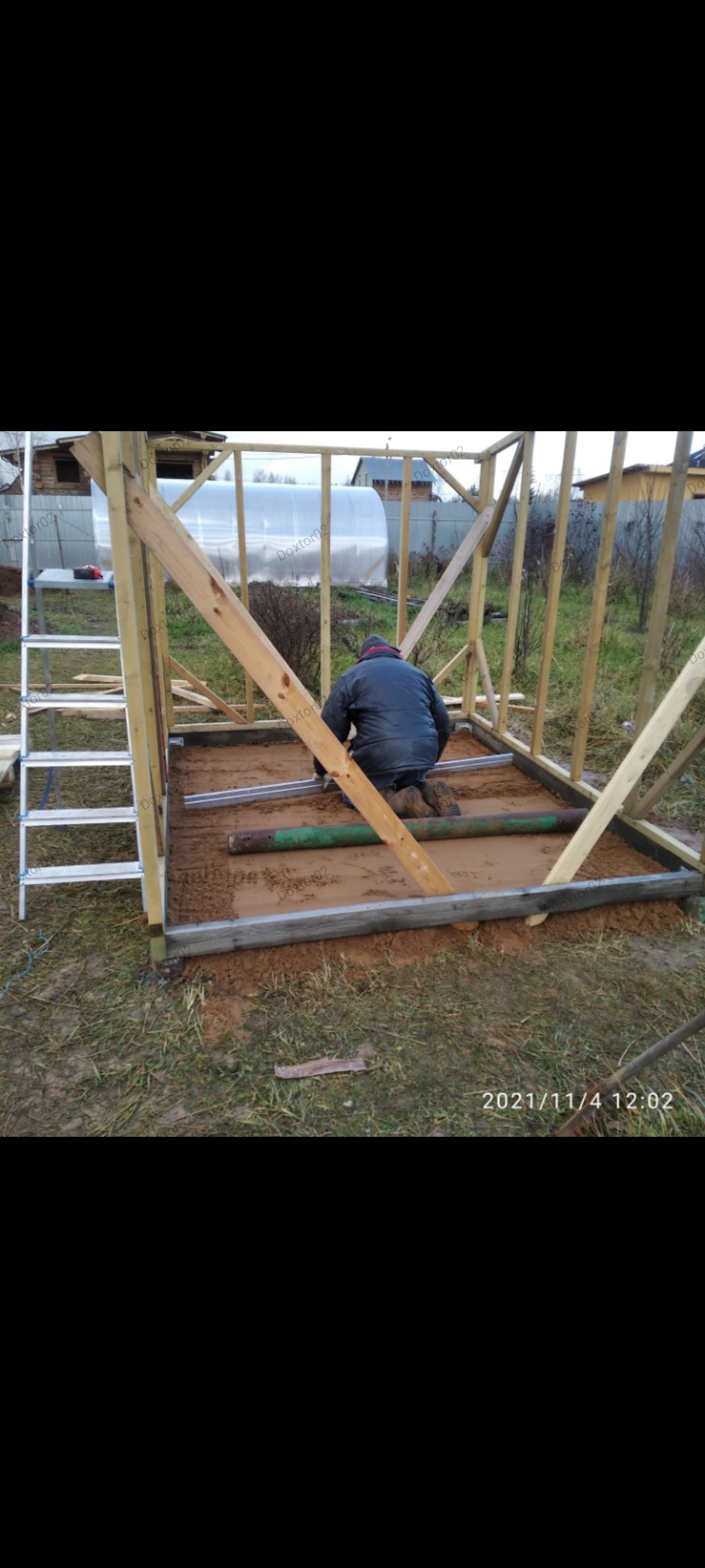 Выложил фото обвязки парника, что бы кто будет делать с предбанником, видел сколько поставил столбиков. Больше не надо, конструкция стен и потолка лёгкая. Кстати, на одном из фото на объекте видна Мобибовская шапочка, контролирует качество, перед постройкой бани. :lol: