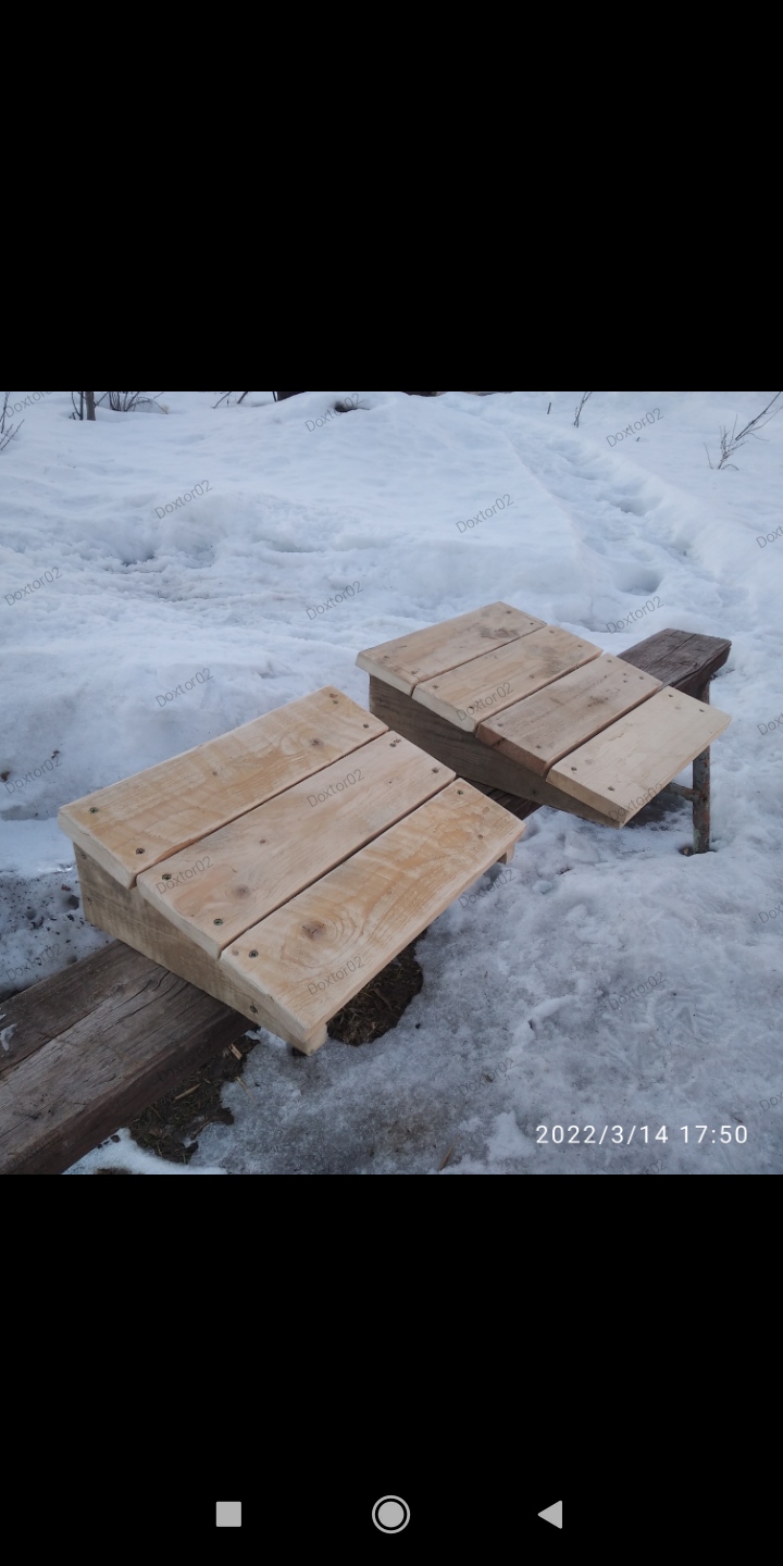 С лавочкой для ног не стал мудрить и поставил из стационарной бани. Полоки уже сделаны.