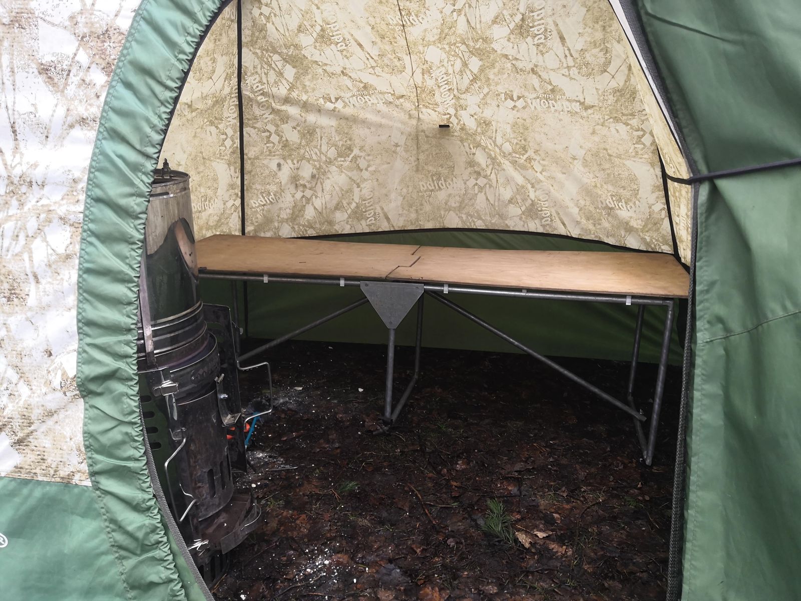 Мой самодельный накидной тент без тамбура. Единственное сейчас я бы по другому его сделал. А так можно и штатный накидной тент с тамбуром, чуть больше времени, но зато есть место где можно передохнуть в тепле