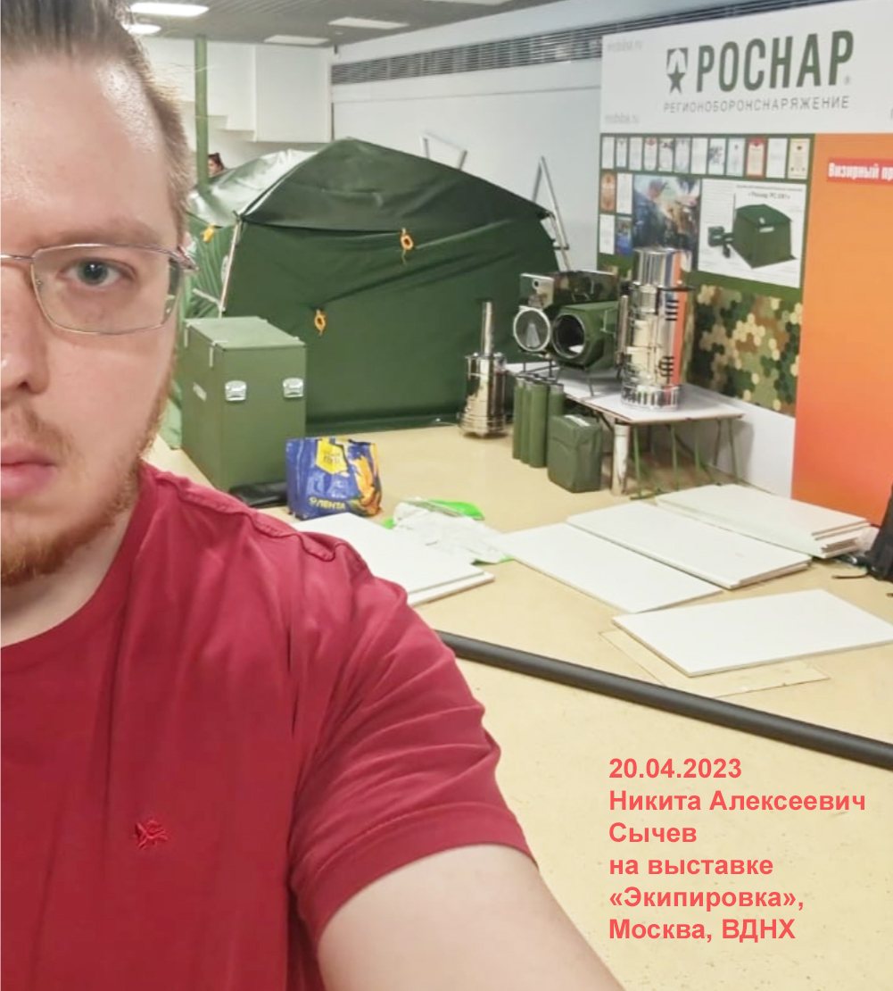 Граждане-мобибийцы из Москвы и окрестностей! Завтра на ВДНХ в павильоне 55 будет выставка "Экипировка" и на ней будет демонстрировать наше изделие РС-281 с печью Дюна-2 и водогрейной системой СВ-50. На выставке будут работать Александр Владимирович Нахошкин, Игорь Сергеевич Ерхов и мой старший сын Никита Алексеевич Сычев.