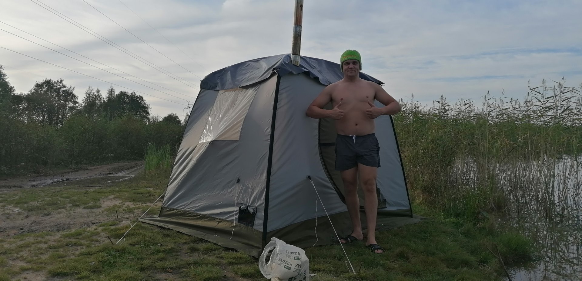 На улице конец июня, в ленобласти льют дожди, погода не летняя, решили с другом на рыбалку с ночёвкой поехать, обязательно с собой берём баню, грузим все в ниву и вперёд. Приехали на место разложились и часок на рыбалку, поймали немного щук на жарку и обратно в лагерь. Начал идти мелкий дождь, потом перестал, погода была сырая. Затопил печь в моей самодельный палатке и друг сразу оценил палатку с печью, что в ней можно вещи сушить. Сказал, что пожалел, о том что не купил к-6 когда я ему предлогал, денег пожалел. Ну теперь у меня сушится будет. Баня была замечательная, напарились, намылись и спать. Утром сборы и домой.
