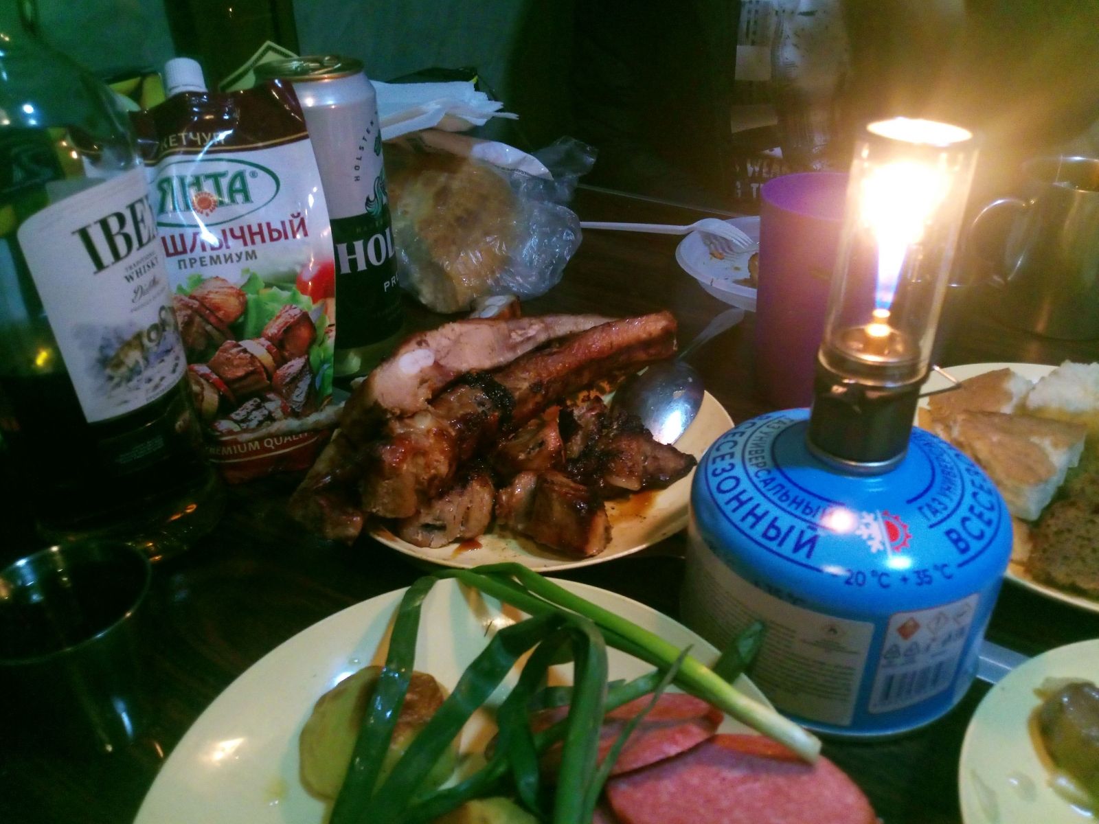 Из наблюдений стоит добавить, что с парогенерирующей бани развозит больше, чем с суховоздушки. И больше ничего делать не хочется. Шевелиться лень. Отдыхали после бани пару-тройку часов. Потом собрали баньку, сделали ещё мяса на Шикардосе и сидели в пятнашке до одинадцати вечера.