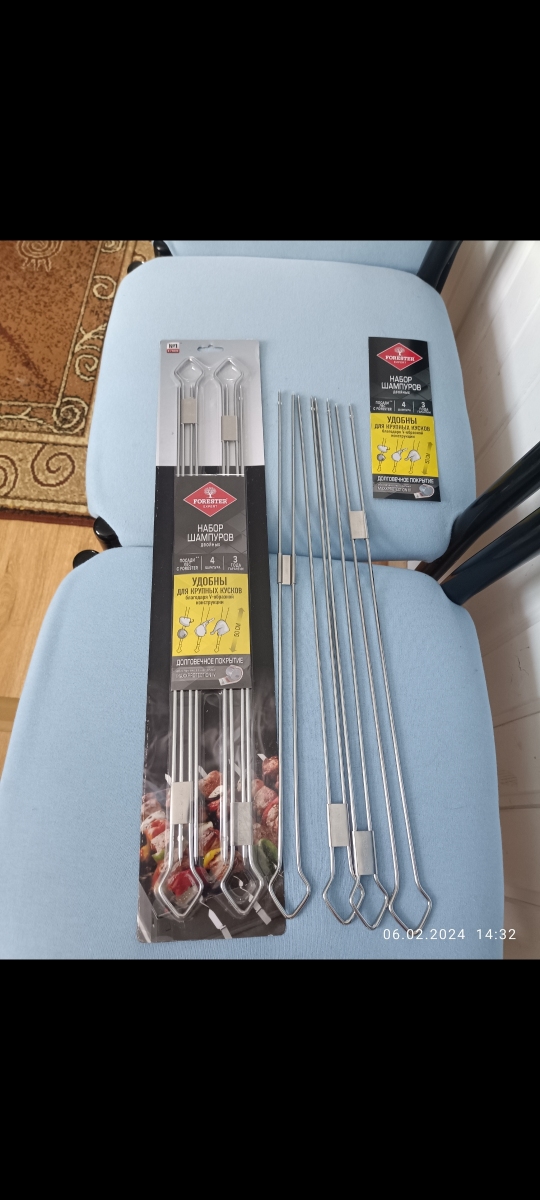 Несколько месяцев назад, кто то из форумчан выкладывал двойные шампуры. Очень я загорелся такие купить для Шикардоса, но цена не устраивала. Зимой не сезон, поэтому всё по 500 руб было написано на ценнике. Взял 2 упаковки ( по 4 шампура в комплекте ), это от жадности, подумал я, но нет, 6 двойных шампуров спокойно помещаются на Шикардосе.