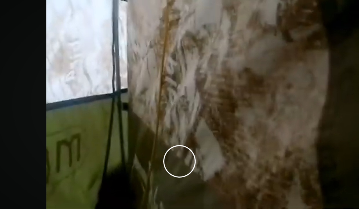Всё просто,у нас нет петли для оттяжки на основной палатке в месте указанным кружочком,фото первое,что бы завязки от тента зафиксировать,фото второе. Я у себя уже пришил. Не получается снять обзор, в одного по тихому ни как не могу слинять в баню,без Татьяны Юрьевны.