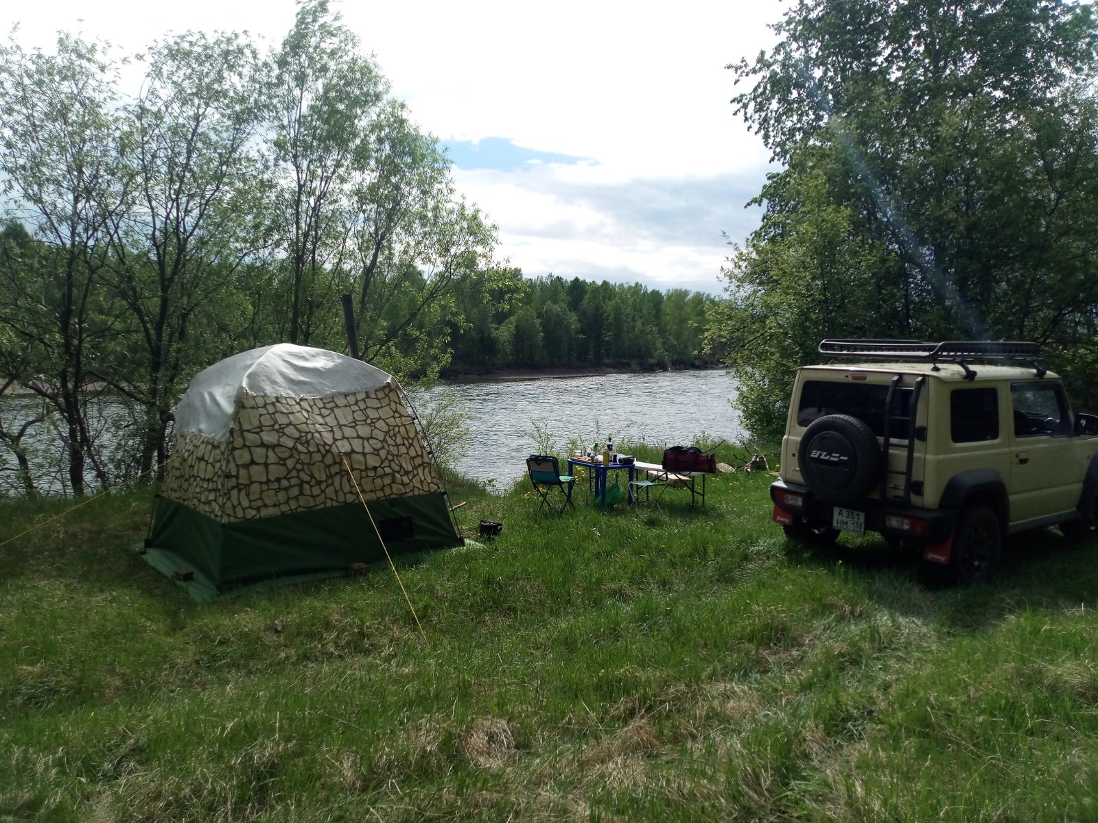 Раз в 21 день у нас с женой совпадают 2 выходных. Начинается так: "Я устала от работы, увези меня на реку туда, где мы два дня будем одни и никого не увидим." Я, конечно, от двух работ совсем не устаю, но раз любимая просит, то едем. Благо, возможность такая имеется.