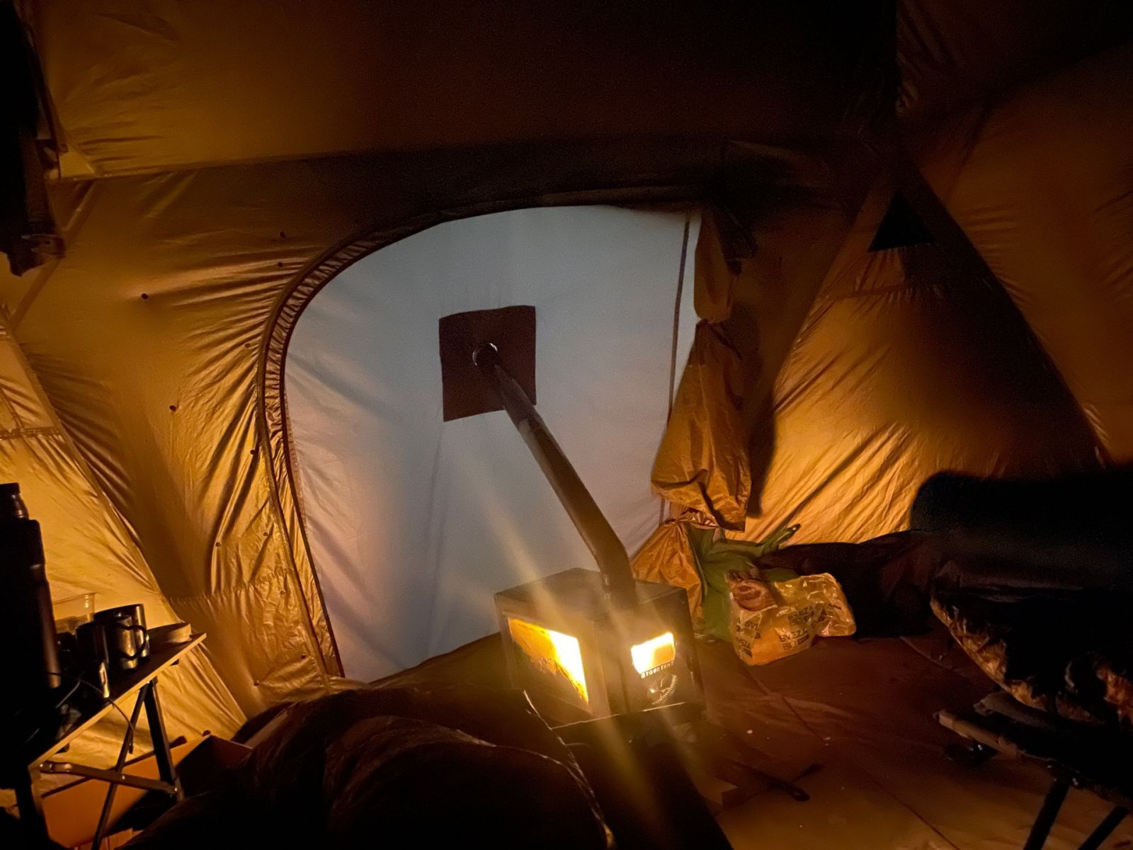 Ну и спали в шатре с печкой на раскладушках, курица на гриле, немного пенного и по крепче.