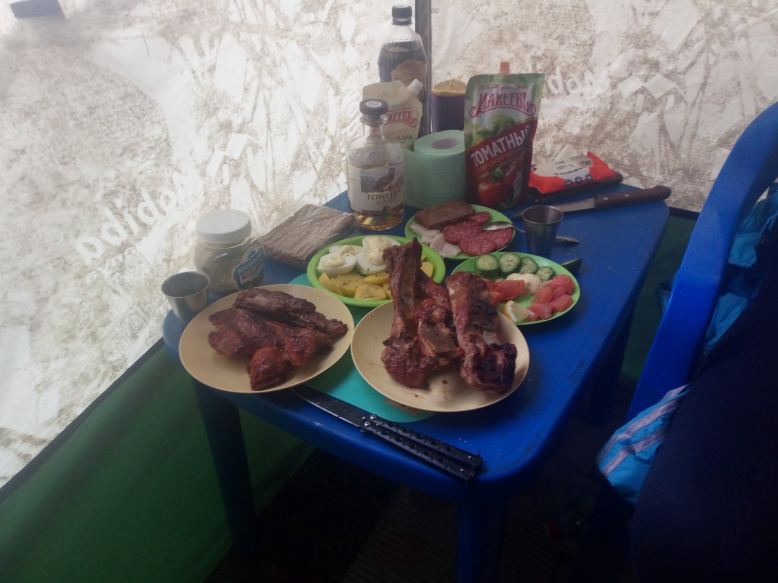 После баньки качественно посидели за столом у окна в тёплом предбаннике.