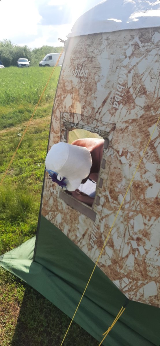 Первые на верхний полок не отважились лезть, жар был отличный. Помимо печи старалось солнце))) В палатке царил дух сталеварства, но дров ушло в половину меньше обычного, спасибо Ра))