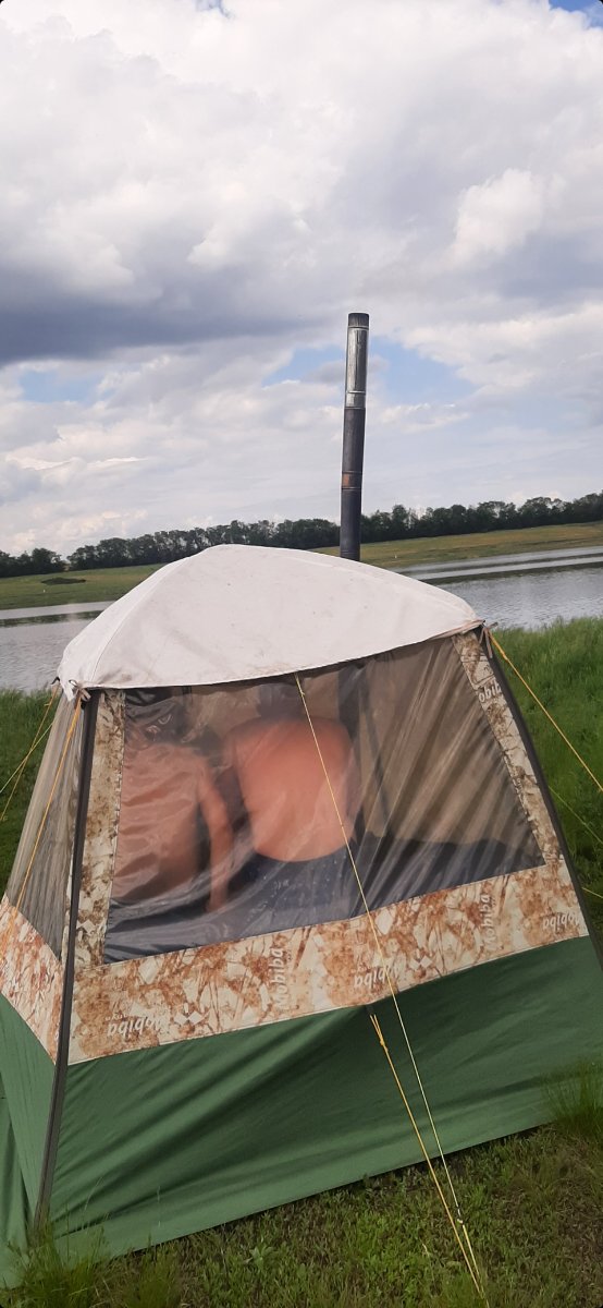 Первые на верхний полок не отважились лезть, жар был отличный. Помимо печи старалось солнце))) В палатке царил дух сталеварства, но дров ушло в половину меньше обычного, спасибо Ра))