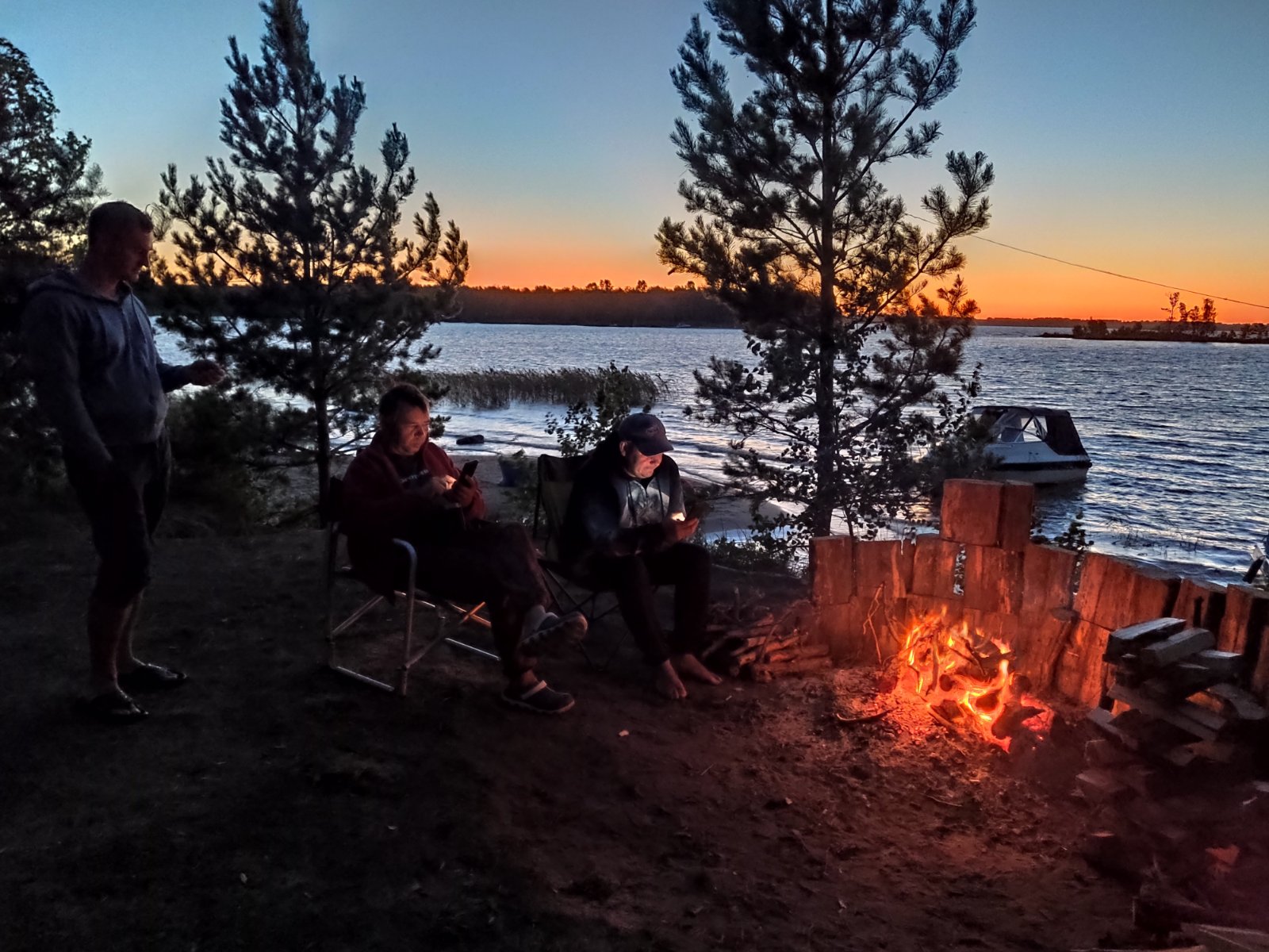 еще в один из дней на противоположном миниострове заметил Кайфандру 5. Решил сплавать туда на сапе к "единомышленнику". Но пока плыл, хозяин куда-то ушел. Мобибный диалог состоялся с его гостями, которые сообщили, что ставят баньку в первый раз. Что ж...