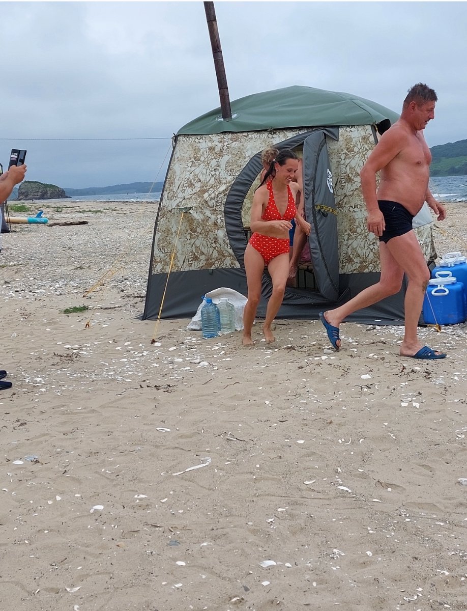 С одной стороны от нас была компания с Хабаровска, с другой из Уссурийска. Когда мы поставились, они подходили, спрашивали что за трубы и тд и тп. Когда узнавали что это баня, скептически ухмылялись, на что были приглашены попарится. Просидев почти все время на ПСН-400 хотя рядом стоял ПС-750 (я постарался конечно))) их мнение изменилось. Вообще баня топилась каждый день и все были в восторге. Равнодушных и недовольных не было. Впрочем, я в этом и не сомневался.