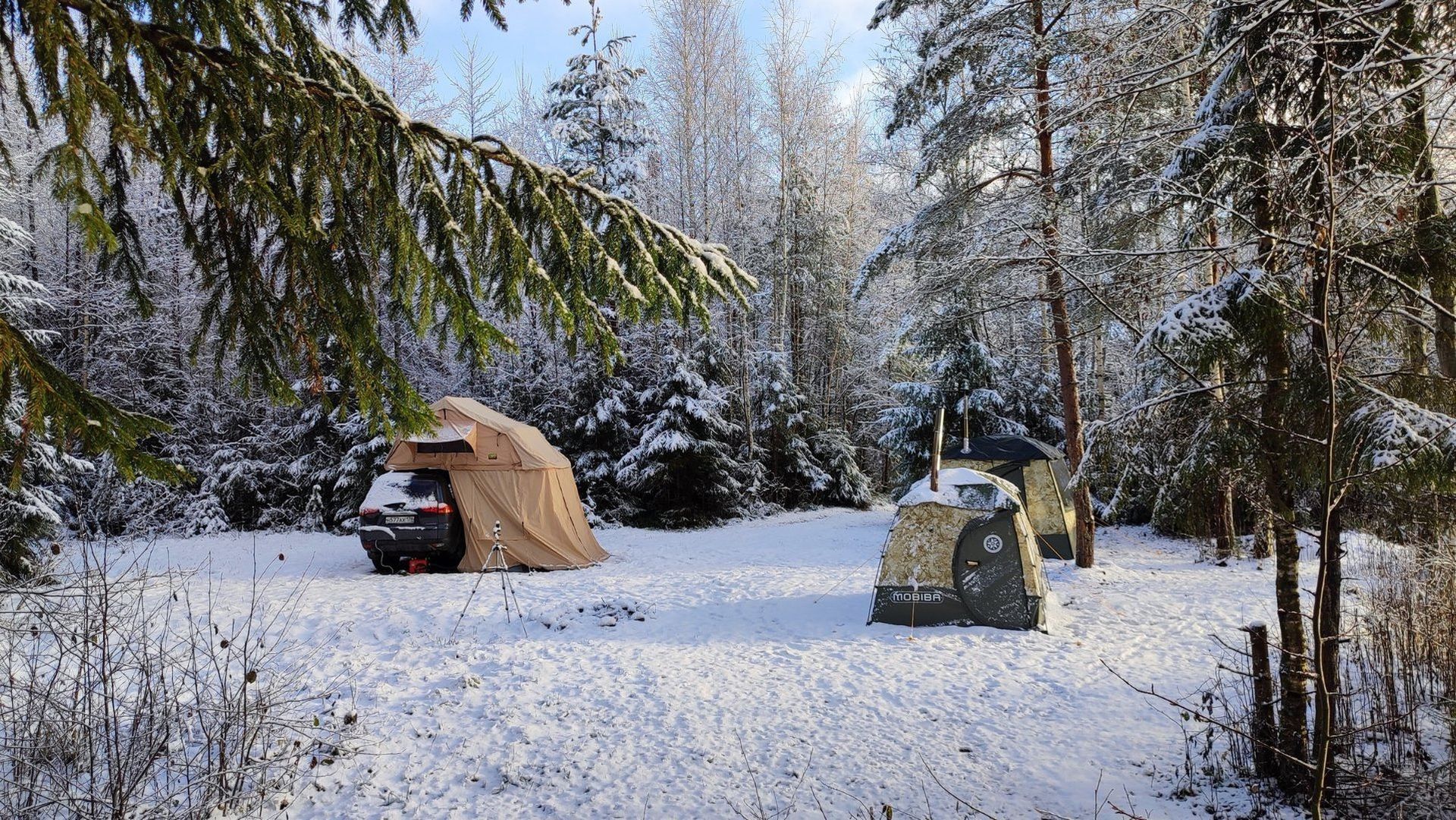 Выезжали мы выходные, с одной ночевкой. Попали на потрясающе красивую погоду. Первый снег постепенно начал погружать лес в зиму, заметая последние следы туристов, одноразовых шашлычников и глухих музыкантов.