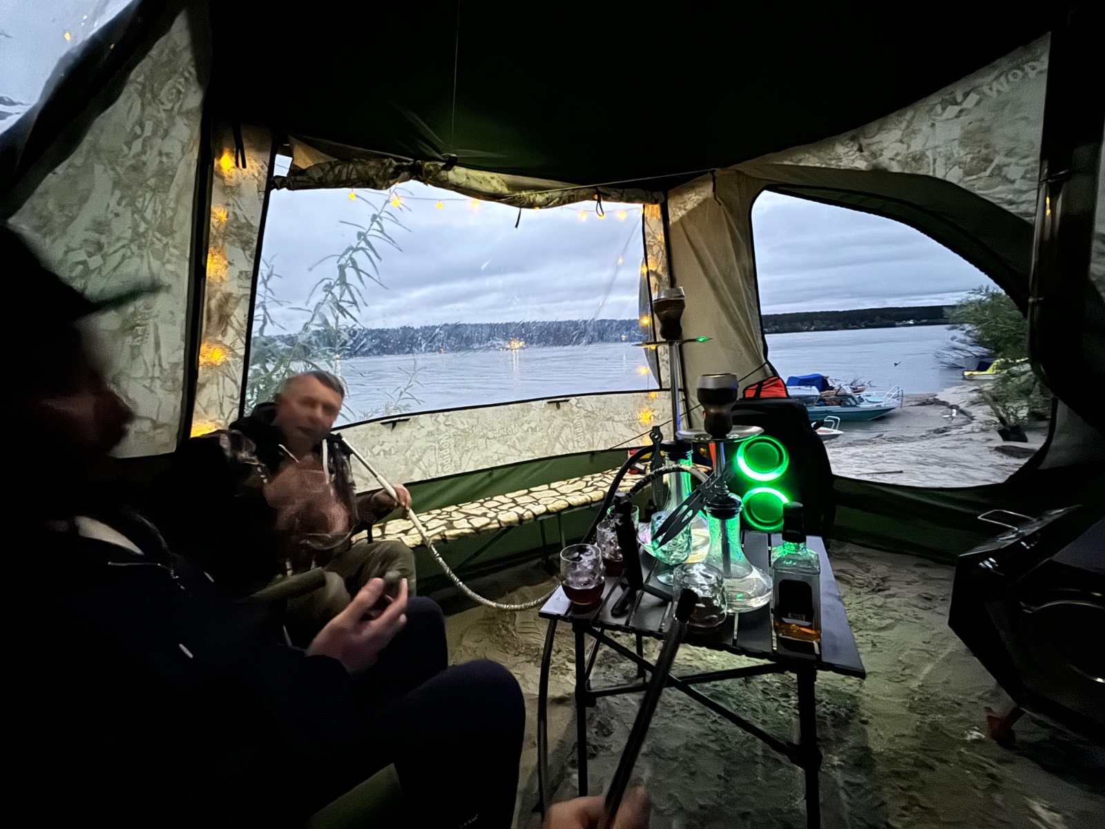 Вот это у вас там вечеринка, и музыка и кальян, только девченок не хватает. А там уже и не до рыбалки.