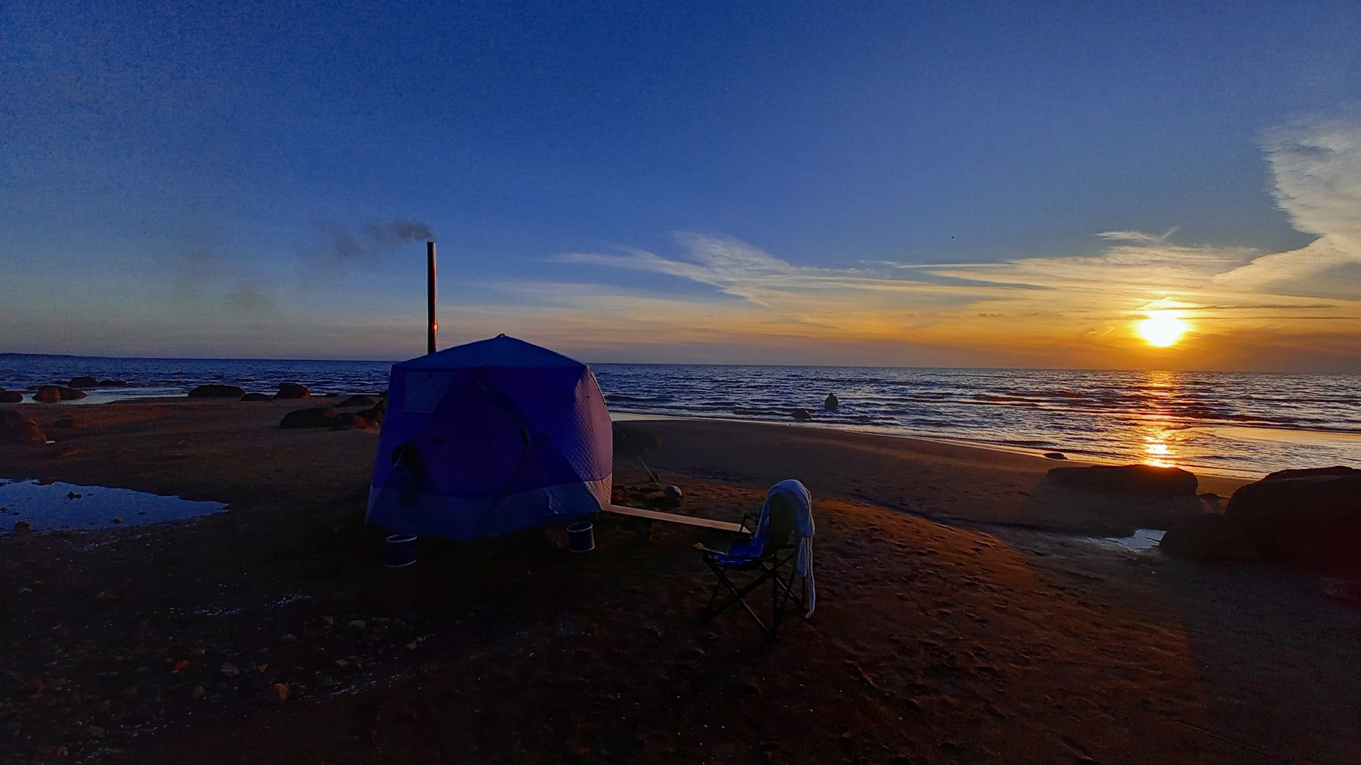 Я на день раньше тебя выезжал с женой на 15 дней в поход. Заранее знали, что из 15 дней минимум 13 будут дождливые. :shock: Ну ничего, у нас же Мегасогра + взяли 2 электронные книги и сумочку бумажных. Будем сидеть в теплой палатки, читать и отсыпаться на природе. Даже мысли не было, чтобы не поехать. Целый же год ждёшь этого большого выезда. Кстати, действительность тоже оказалась не страшной- дожди были только ночью, а днём мелкий иногда моросил. Закрепил МБ-442, РБ-200 и кухню на колышки от Бахи и по барабану было на эту погоду и сильный ветер. :D А с баней действительно, не обращаешь внимание на температуру на улице, знаешь что вечером всегда будет жарко. :D