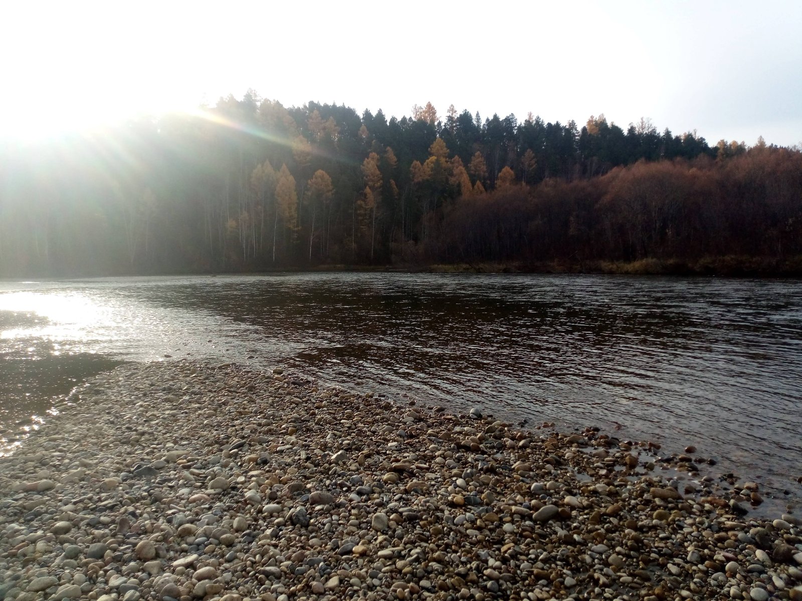 Октябрьская Белая тоже красива. Совершенная тишина. Мы одни на 40 км. Уже никто не сплавляется на лодках (ночью минус), а на авто в эти места не заехать.