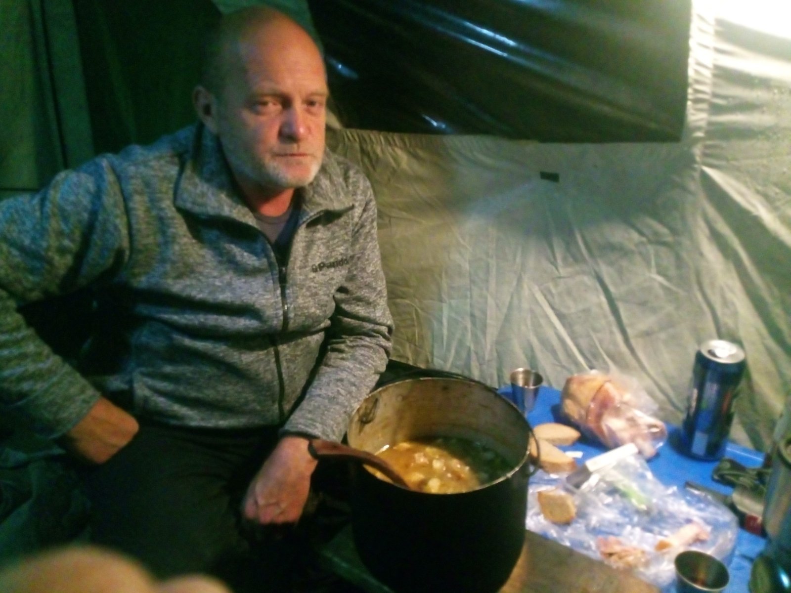 В тамбуре для двоих вполне уютно После бани снова здоровый и молодой Сергей Григорьевич варит знатные супы Нормально выспались в тепле на раскладухах. Дюна в двух слоях на этих брикетах работала с 23.00 до 7 утра.
