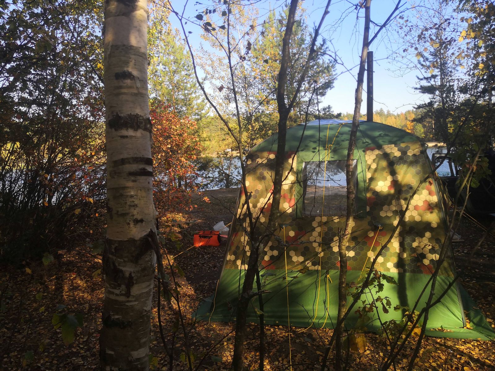 Помнится, Олег Вакушин тоже ставил палатку без каркаса, причём банную.