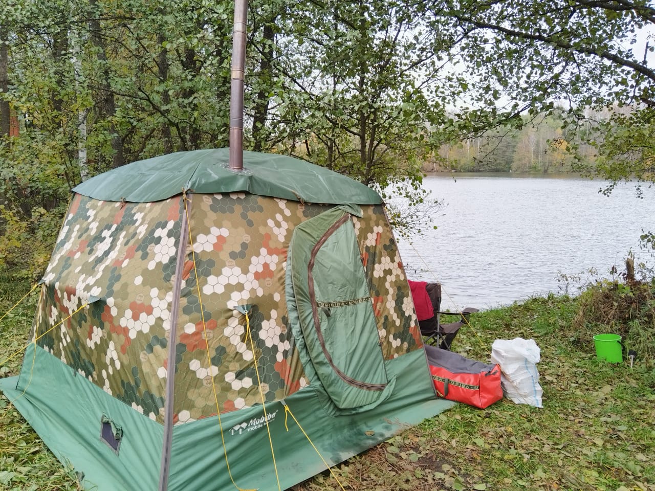 Еще на дня случилась досада, использовал палатку без накидки, друг, который устанавливал-плохо привязал веревку от дверцы дымохода. Подул ветерок, накидка прилипла к трубе. Как палатка не сгорела... вовремя заметил...Так что будьте аккуратны
