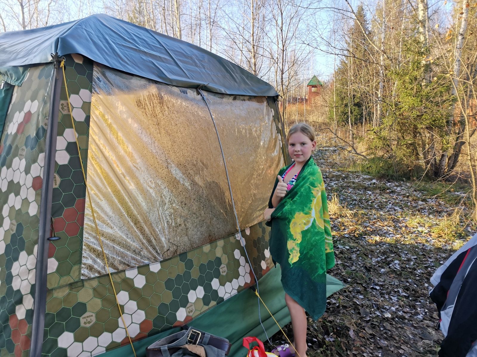 Сама по себе идея с прозрачным куполом для мобильной бани - это интересно. Но надо что-то думать по технологии. Наши обычные швейные технологии не любят большие окна, не любят, когда много этого липкого винила.