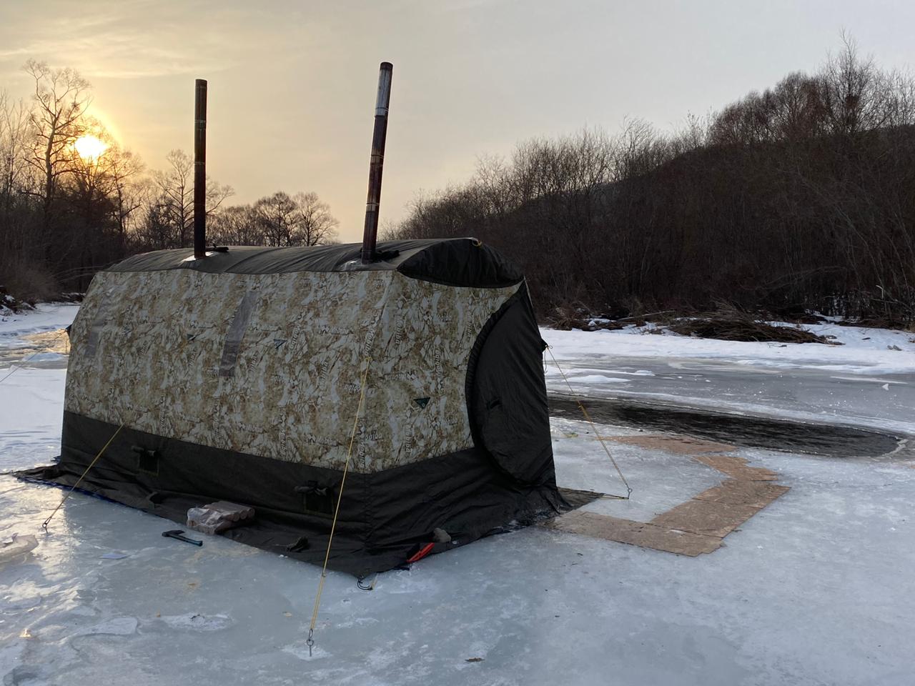 У меня стало доброй традицией праздновать Крещение на речке, на нашем любимом месте! Между прочим все наши друзья сказали что это место обладает особой аурой. все были в полном восторге от него! Но это было позже, а начиналось все как ведется с разведки! Надо было убедится что там все в порядке, речка то горная и в период тайфунов может легко менять ландшафт, но что удивительно все осталось неизменный будто бы и года не прошло, я же говорю удивительное место! Компания собиралась не маленькая, поэтому стал вопрос что ставить банькой, МБ104 или МБ15 Пришлось изрядно "покурить" форум, сомнения терзали до последнего момента ( в наличии были 2 медианы и КЦ2) но природа как всегда расставила все точки над "и" Погода была чудесная, при полном отсутствии ветра почти плюсовая температура!