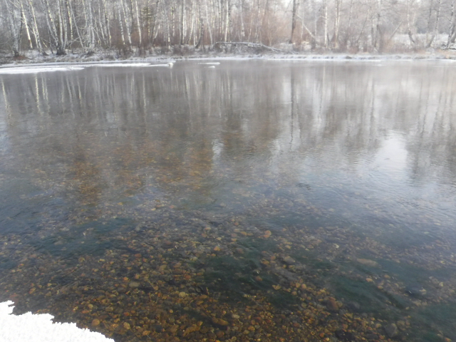 Очень тёплая осень у нас в этом году. Сужу по реке. В пошлом году мы закрыли сезон 26 октября - от Белой остался маленький ручеёк во льду, а сейчас ещё даже заберегов нет.