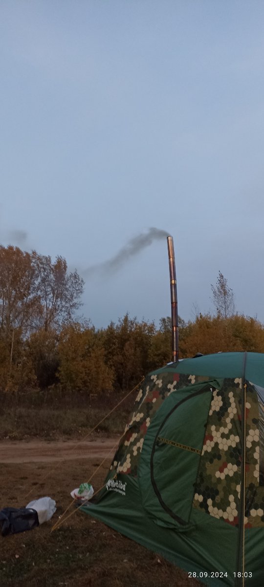 Александр, спасибо! С ночёвкой это следующий этап, с момента пользования баней палаткой 8 лет прошло, 7 лет в браке, и вот только первый раз семьёй парились. Да у дюны-3 штатный дымоход коротковат, для мб-15, но этот вопрос легко решается, для этого я беру два сегмента от жиги-3 90мм и 85мм, их друг в друга и в топку кц-4 7-м сегментом легко встают за счет меньшей длины. И на выходе два дополнительных сегмента для дюны-3. В этот выезд забыл положить, у меня они всегда в кц-4 лежали, но с приходом лета не нужны были, брали одну палатку. Теперь в зиму опять положу.