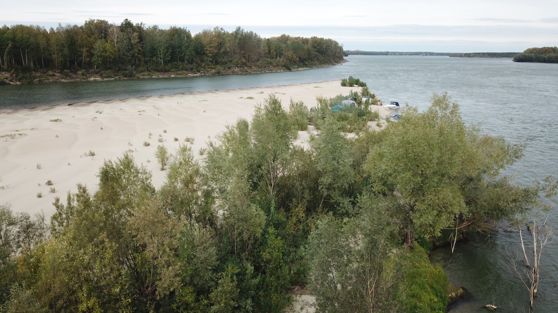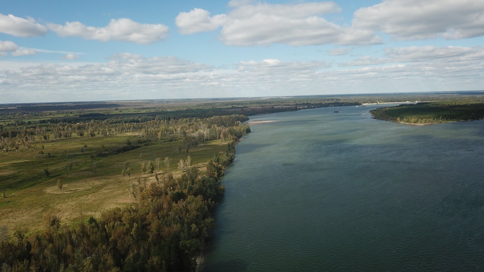 в сентябре Обь уже не такая мутная, более красивый оттенок с относительной прозрачностью (у берега). Там, кстати, в трех метрах от берега уже "с ручками, с ножками", глубина быстро набирается.
