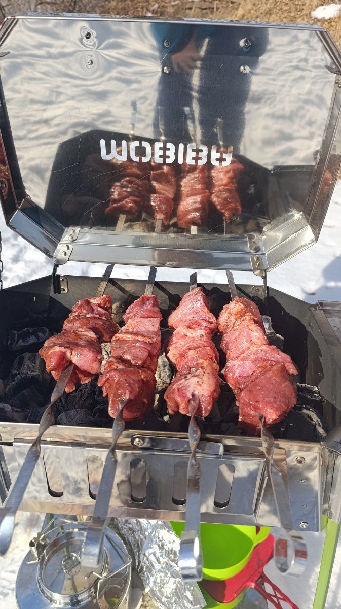 Дальше я даже хотел подарить его Алексею и Вале, но вовремя понял что это бессмысленно. На даче у них есть здоровенный мангал. А на природе мясо и прочее всегда жарю я на своем мангале ...