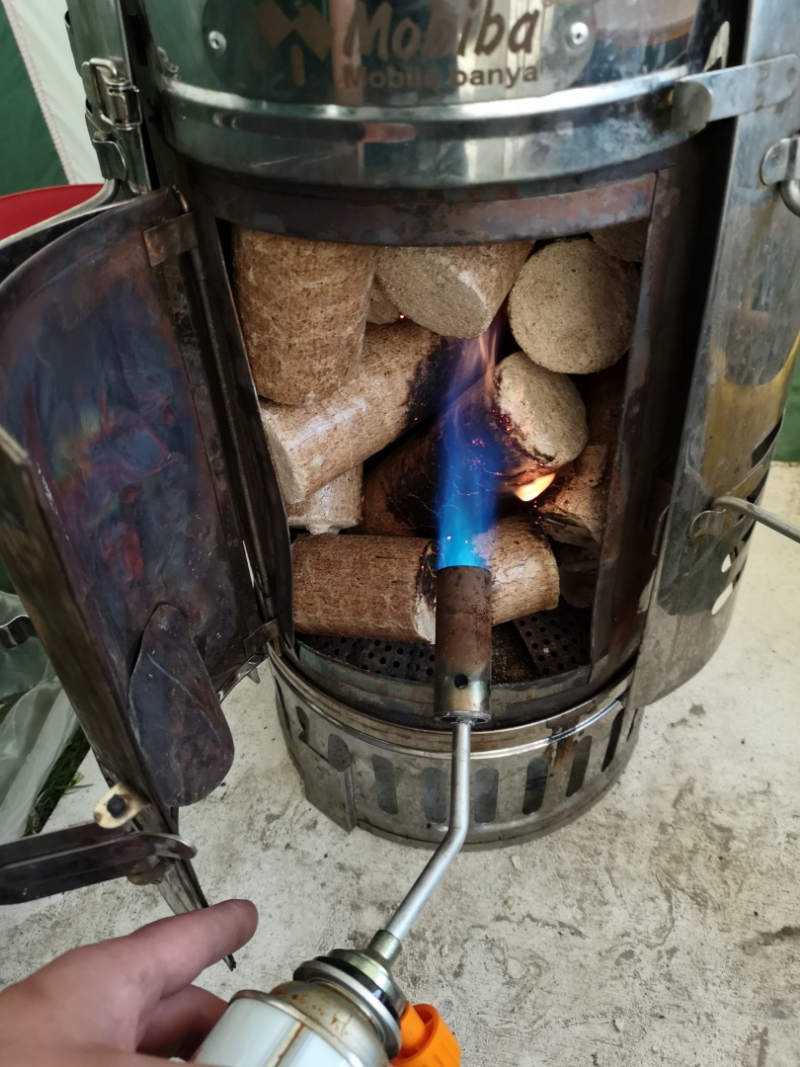 КЦ-2 забил под завязку брикетами. Налил сразу полный бак воды. Наверное, в этом была ошибка. Сразу после растопки из дымохода повалил густой бело-желтый дым, как из паровоза, прямо на соседские дома. Думал, вызовут МЧС, обошлось. Дымовая атака на соседей продолжалась минут 10, по мере прогрева дымохода и нагрева воды дым постепенно сошёл на нет. Через 15-20 минут его уже не было совсем. Внутрь парилки дым не шёл совсем, тут порядок.
