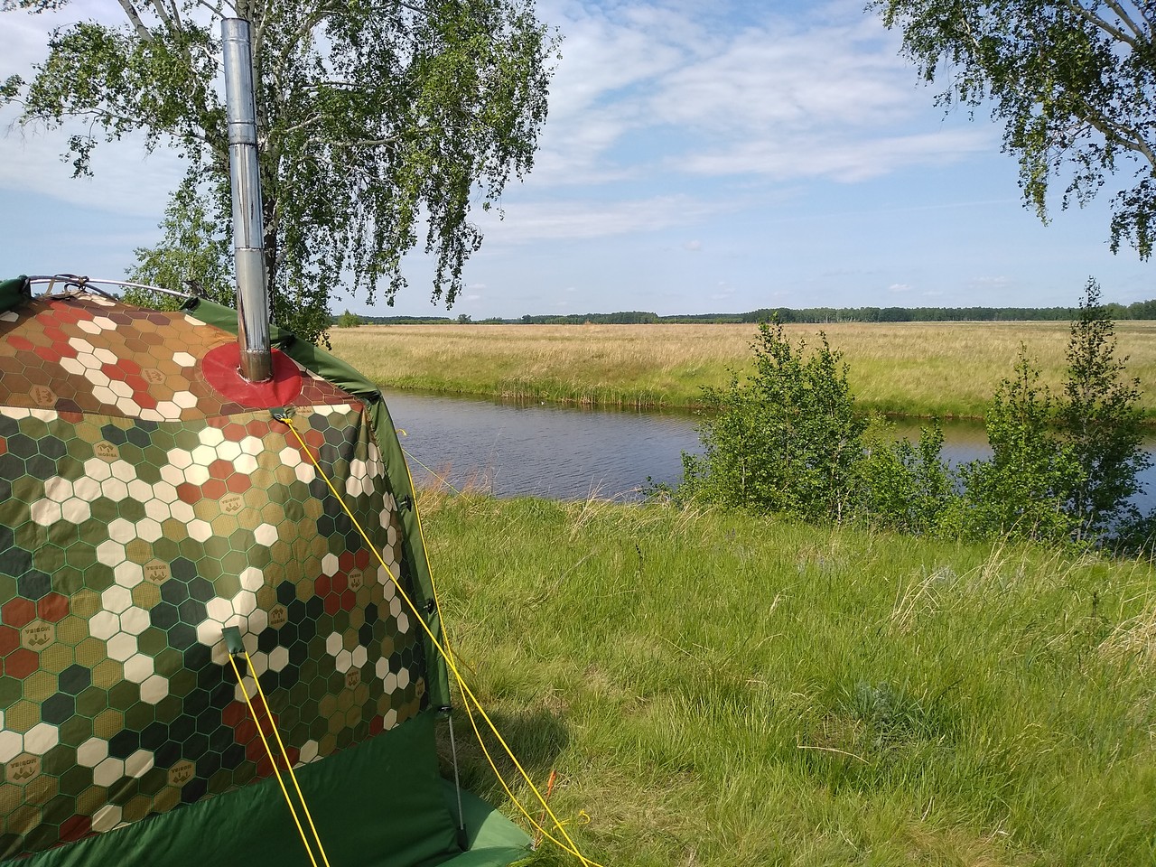 P,S, купите накидку несгораемую на сайте или сами сделайте - это позволит сберечь крышку палатки - и не будет огорчать дырками от сажи (это случится обязательно если не защитите крышу)