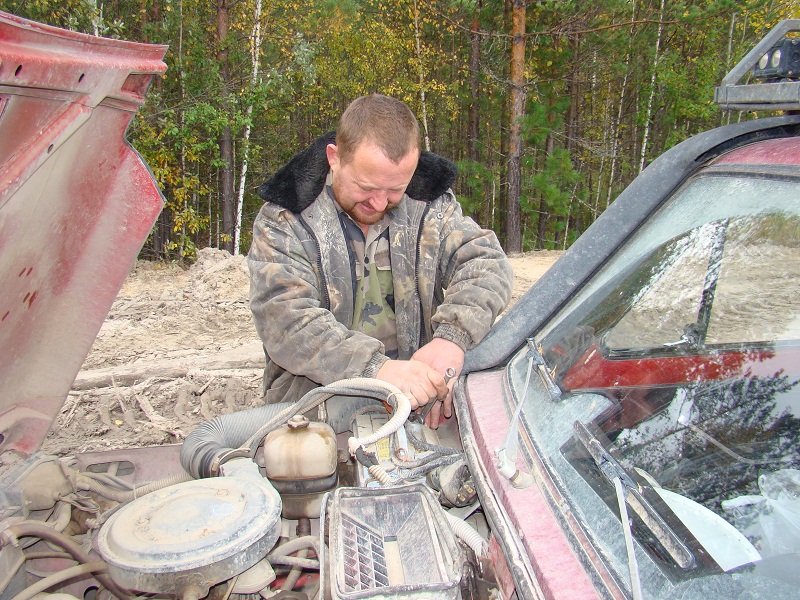 Марина на сей раз остается дома: ее «норма приключений на сентябрь» уже выполнена (а моя – нет; куда деваться?). А мне приходится думать, как же поступить. Вариант «доехать докуда можно, а дальше идти пешком и нести с собой аккумулятор, инструменты и ЗИП для ремонта» я сразу отложил на крайний случай: это, конечно, можно, но после свежих в памяти приключений с пешими прогулками как-то… не внушает энтузиазма. Значит, нужна машина. Через несколько дней туда должна заходить вахтовка с лесозаготовительной вахты, а еще через несколько – лесовозы, можно зайти с ними, но данный вариант тоже «не айс». Вся техника старая и держится на честном слове (причем – неизвестно чьем): та же самая вахтовка может идти туда сутки, может и трое, устраняя появляющиеся неисправности по ходу следования, а может и вообще вернуться с полдороги, если поломка окажется серьезной. Да и места в ней мне (тем более – с барахлом) мне тупо может не хватить. Опять же, неизвестно, когда именно она туда пойдет. Ситуация осложняется тем, что через шесть дней мне туда завозить гостей на охоту на медведя, следовательно, в запасе у меня 3-4 дня, и это – максимум. Значит, используем дивную опцию «помощь друга». Тут тоже не все радужно. Друзей, в т.ч. и на внедорожниках, у нас с Мариной много, беда в том, что далеко не всякий внедорожник туда сможет дойти. Как выясняется в ходе проведенного обзвона и ряда встреч (с демонстрацией фотографий и эмоциональными рассказами о бродах «до середины лобовика» и колеях «вам до пояса будет»), вообще ни один не сможет. Пичалька, чо!
