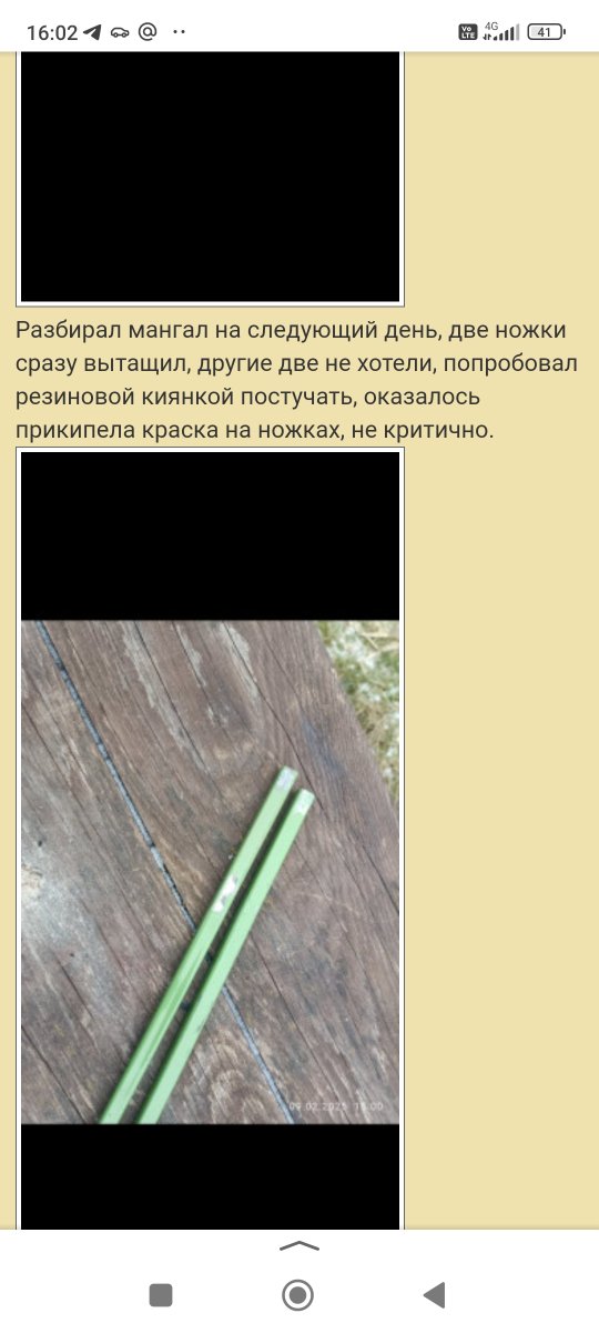 Дополню, вчера разбирал мангал, открутил барашки и поднял мангал вверх, ножки сами выскочили, видимо всё прите́рлось.