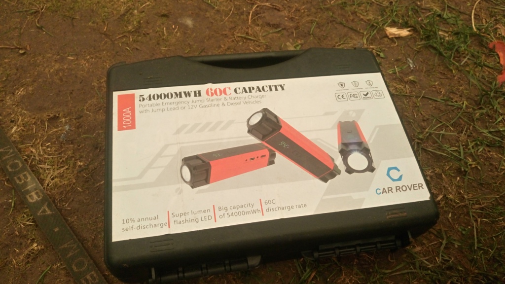 Фотографировать было некому, а мне некогда. Я просто получал кайф наслаждаясь непередоваемой атмосферой! Вообщем выпал из жизни часа на четыре-пять. Но эти четыре- пять часов были часами чистого позитива! За временем вообще не смотрел. В этот раз испытал душ, который от прикуривателя. С лета все не получалось. Писать про него не буду. Есть в теме про души. Работает. Пока весьма не плохо. А вот питал я его вот такой штуковиной. Этакий пауэр-банк с функцией запуска авто. Машины не заводил, а вот душ работает прекрасно. Перекачав два ведра воды (по 10 литров) съел два процента зарядки. Удобно, если машина от бани далеко.