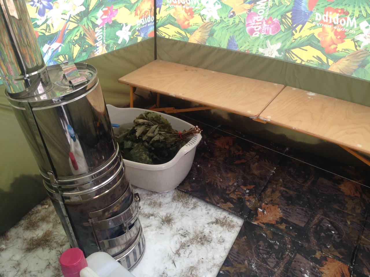 Вопрос, чем будете топить. Выкладываю фото из архива (2018 год). Топли с Павлом мелорубленной просушенной березой - режим "Сталевар" был обеспечен. Но если есть возможность купить тент, то лучше купить, это даст еще запас. А также появится предбанник, где можно без ветра перевести дух и сложить вещи или запас дров.